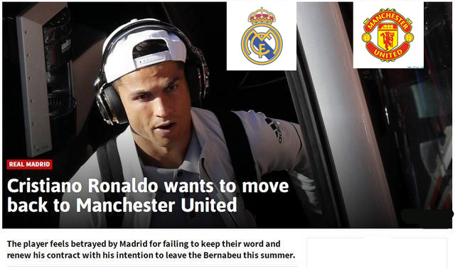 For å ha lyst til å forlate Real Madrid til å returnere til Manchester United, har Ronaldo informert om noen av lagkameratene sine. En av grunnene til at Ronaldo forlot Real Madrid var fordi han følte at han ble lurt. Etter å ha vunnet Champions League-tittelen sist sesong, fortalt Florentino Pérez Ronaldo at han ville utvide sin eksisterende kontrakt, som Ronaldos nåværende kontrakt utløper i 2021, men har ennå ikke materialisert seg.